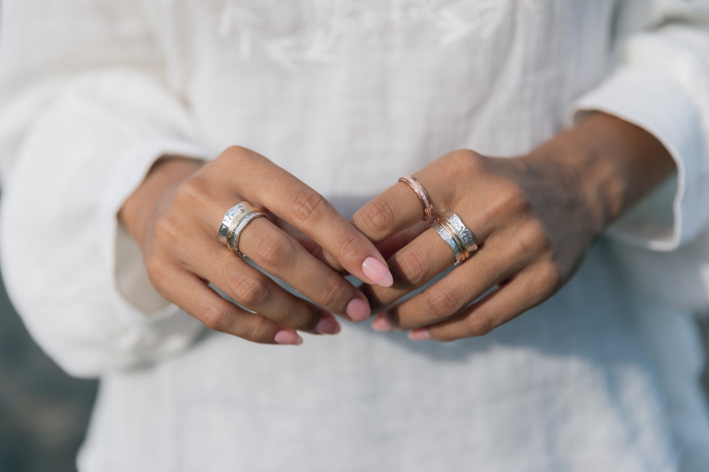 Restore a sense of inner balance and harmony by spinning the bands on your MeditationRing.