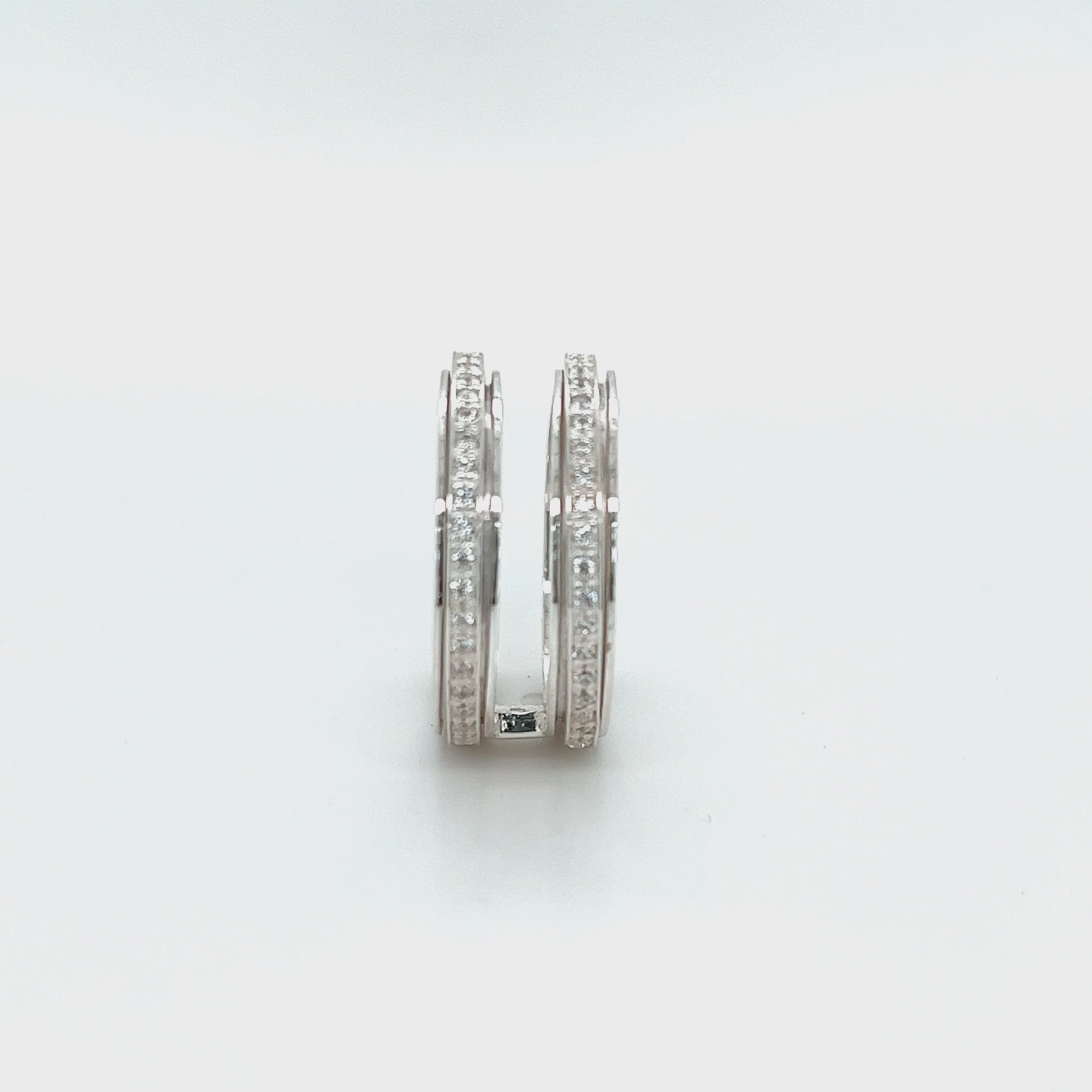 Sterling Silver double band Meditation Ring with two beautiful spinning bands featuring clear CZ stones connected by a silver bridge. Includes complimentary MeditationRings Tin & Travel Pouch