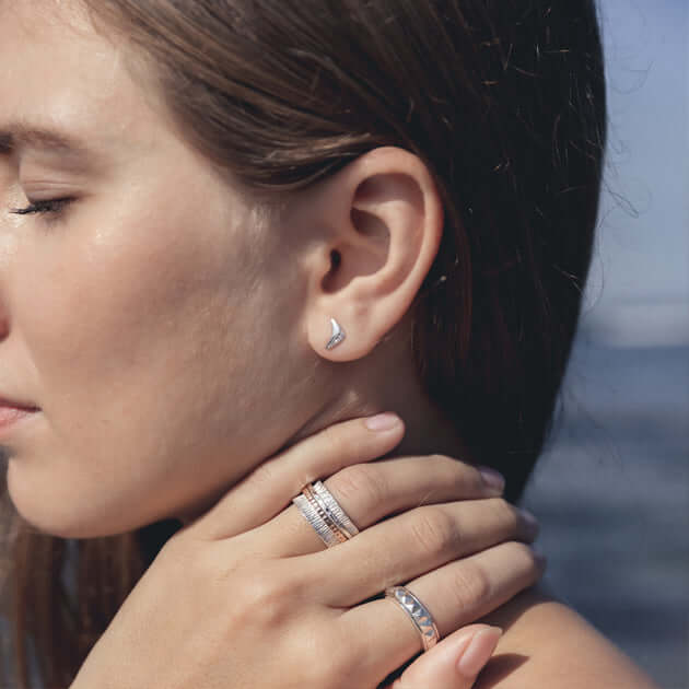 Sterling Silver Meditation Ring featuring retro square pattern spinning band. Includes complimentary MeditationRings Tin & Travel Pouch