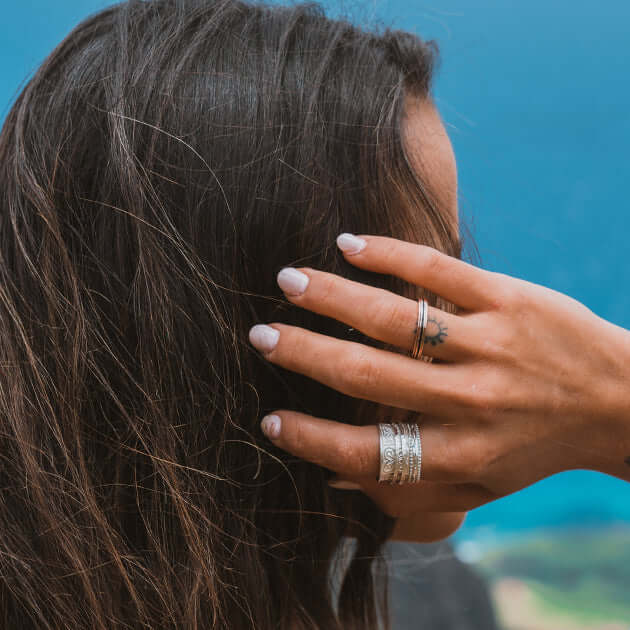 Sterling Silver Meditation Ring with butterfly pattern and two spinning bands. Includes complimentary MeditationRings Tin & Travel Pouch.