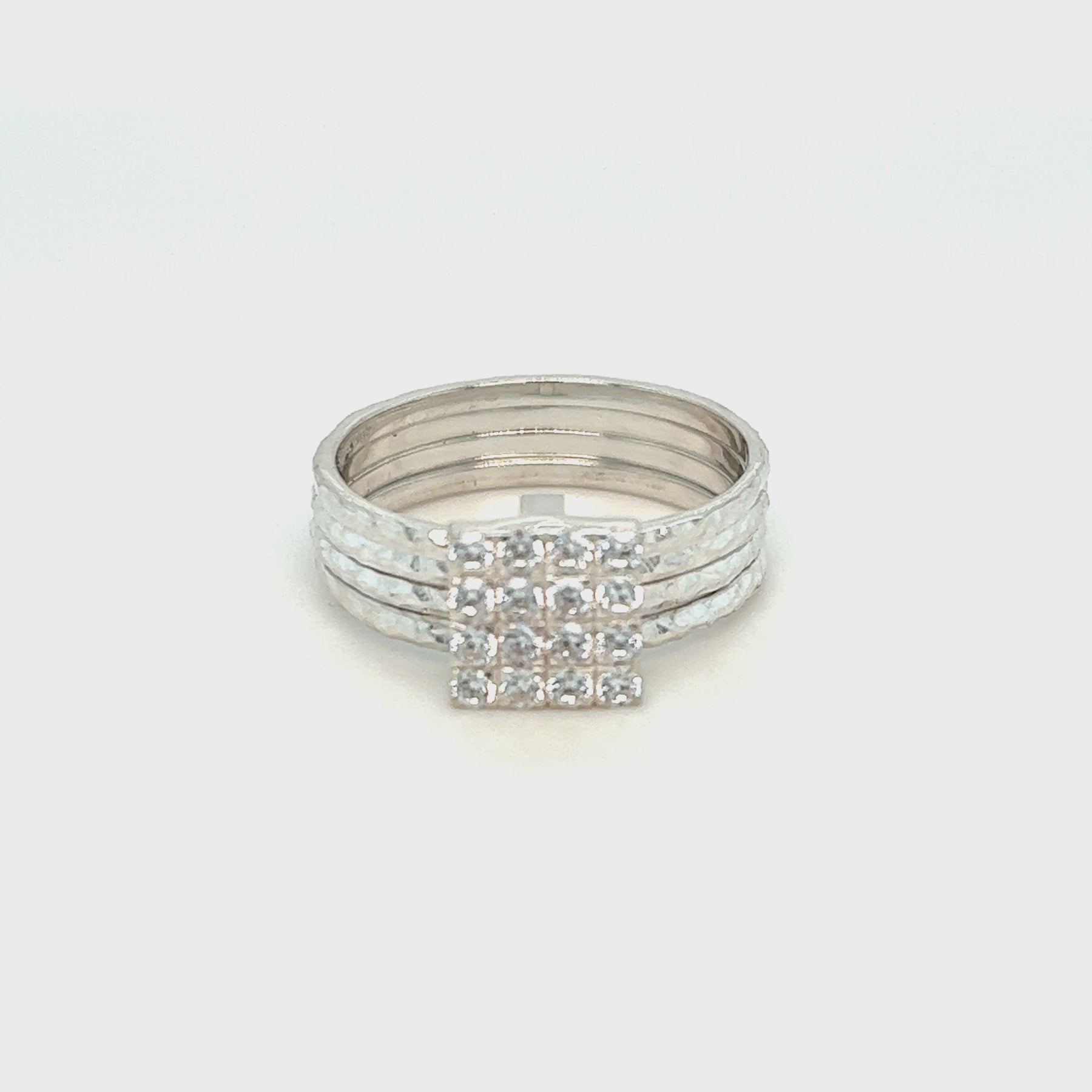 Gorgeous Sterling Silver Free Floating Meditation Ring featuring four Silver spinning bands and a beautiful square center with 16 CZ stones. Includes Complimentary MeditationRings Tin & Travel Pouch