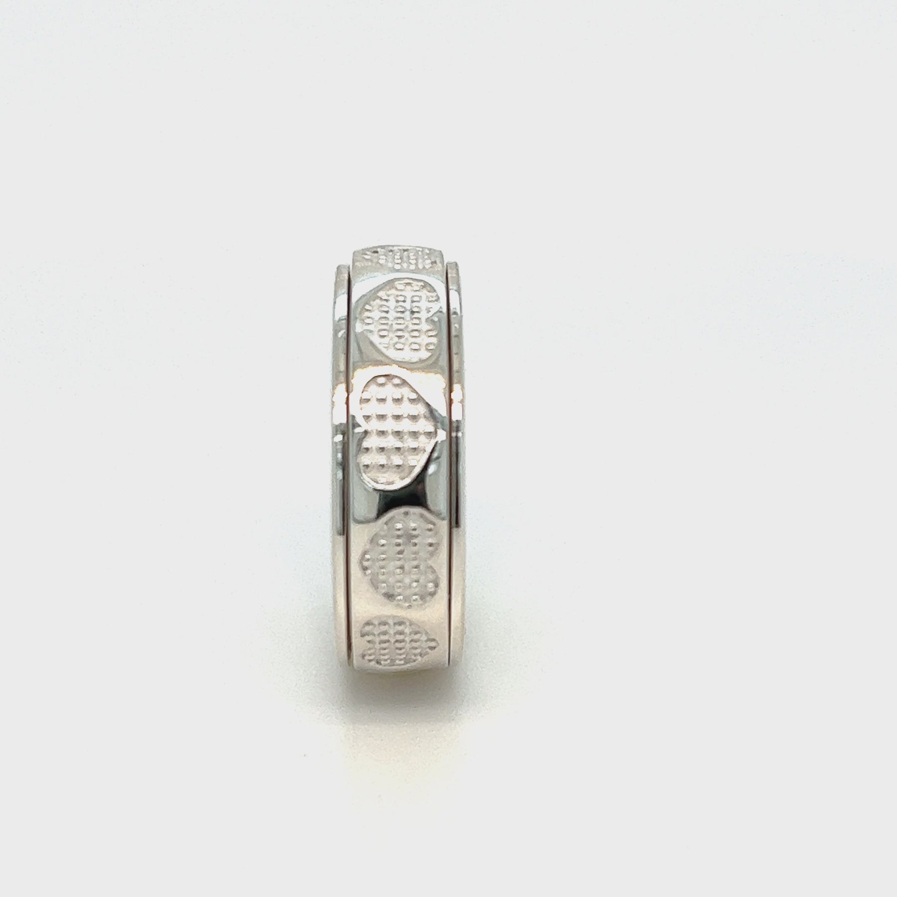 Sterling Silver Meditation Ring with heart bubble silver spinning band. Includes complimentary MeditationRings Tin & Travel Pouch