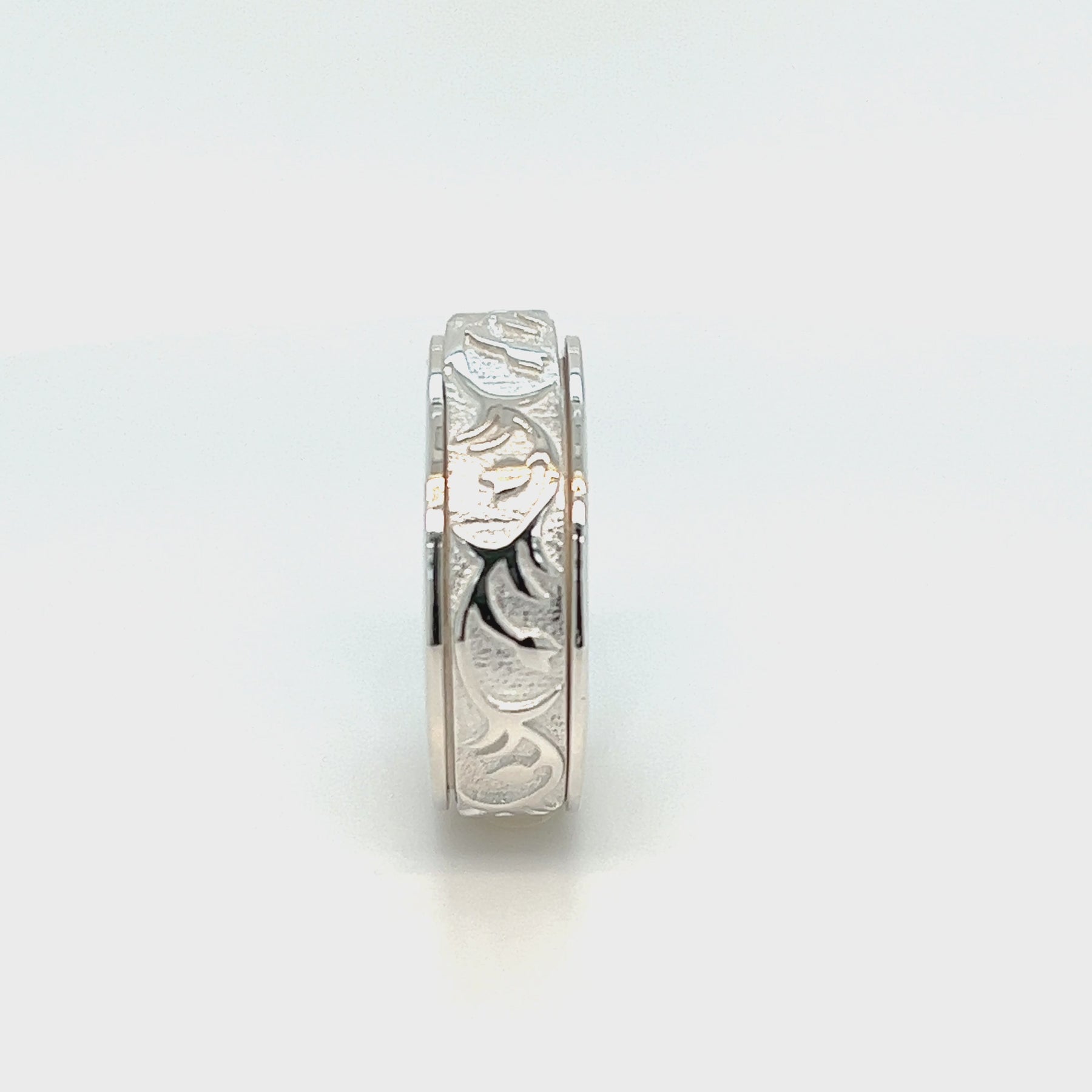 Sterling Silver Meditation Ring with a brushed rose outlined spinning band. Includes complimentary MeditationRings Tin & Travel Pouch