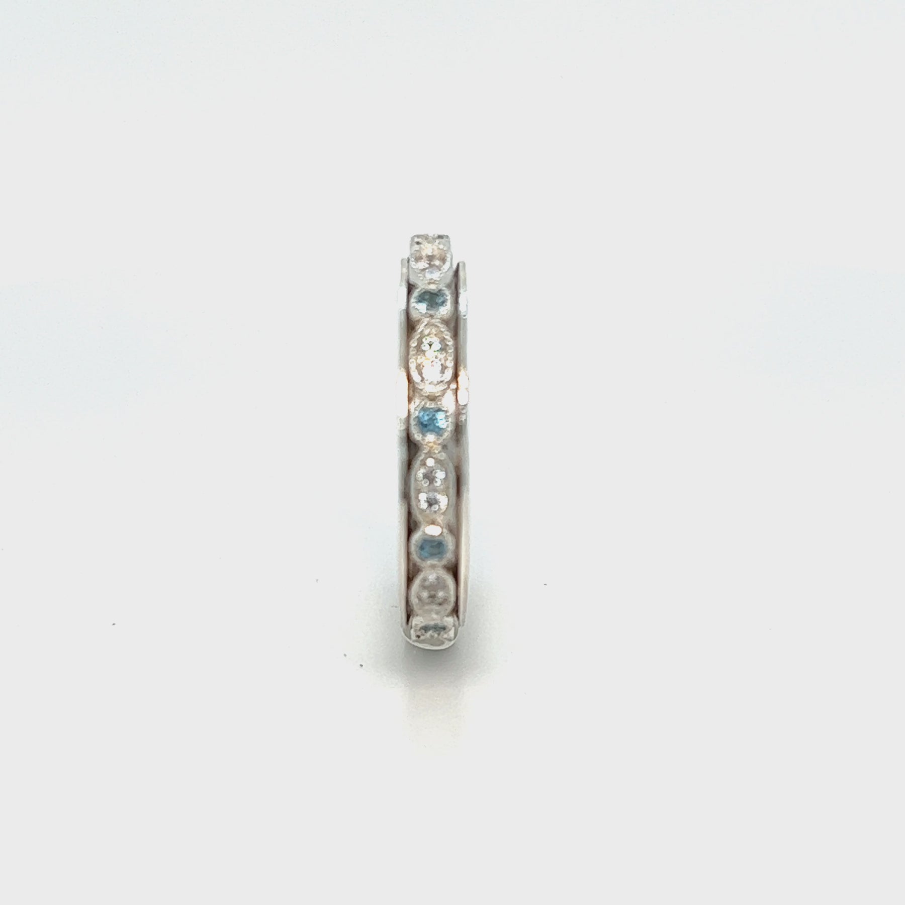 Sterling Silver Meditation Ring with a beautiful intricate oval and marquise spinning band with semi-precious Blue Topaz Gemstones & Clear CZ. Stack them any way you like, these versatile fun Meditation Rings can be worn in many different ways! Includes complimentary MeditationRings Tin & Travel Pouch.